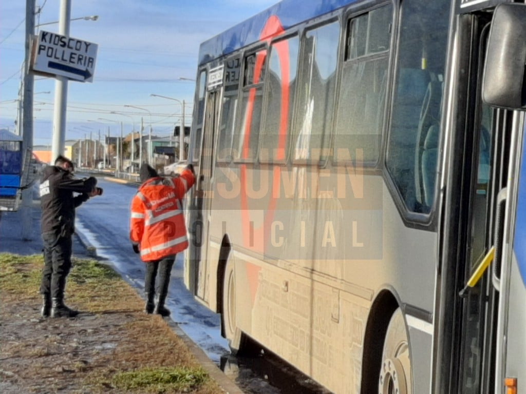 Sucedió esta mañana en un colectivo de la empresa City Bus, el cual realizó una maniobra de giro en calles O´higgins y Arteche del barrio AGP, deslizándose en el hielo.