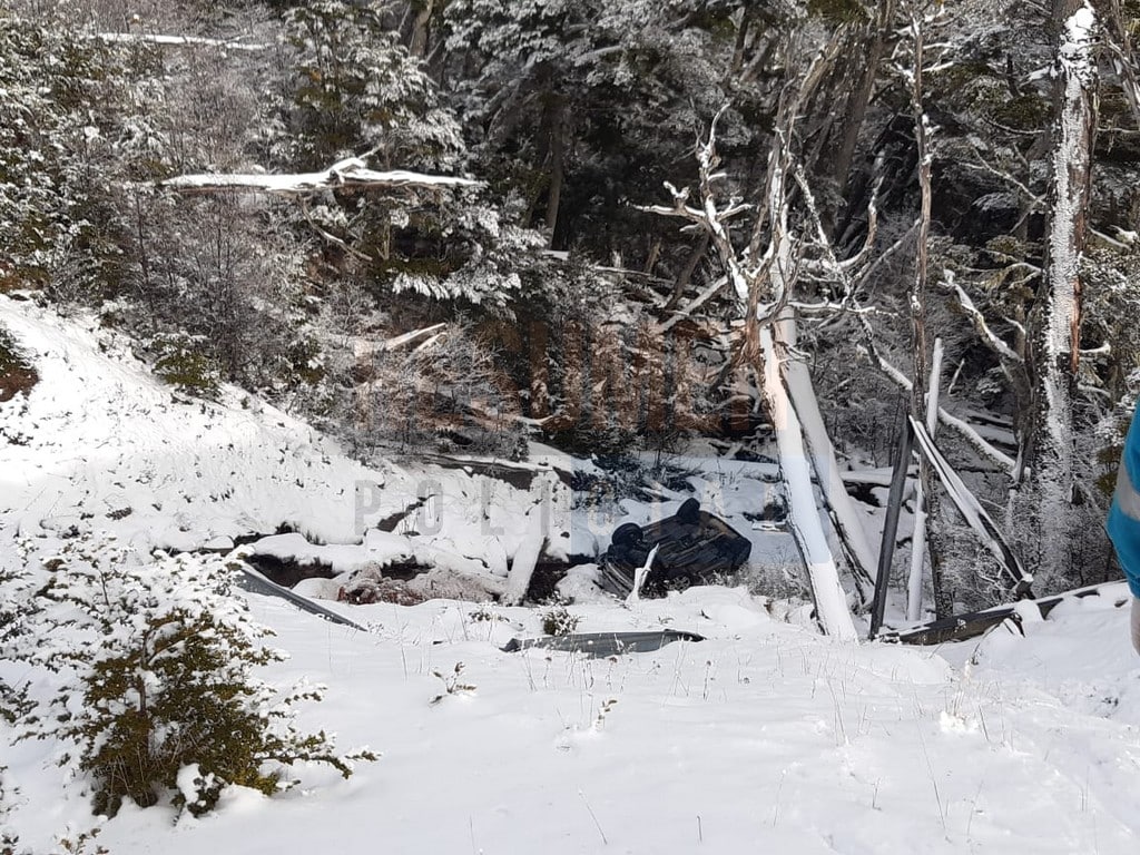 A causa del estado nevado de la calzada, perdió el dominio del rodado que terminó cayendo y volcando sobre una pronunciada pendiente.