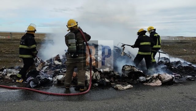 Camionero debió tirar su carga cuando se incendiaba sobre la ruta 3