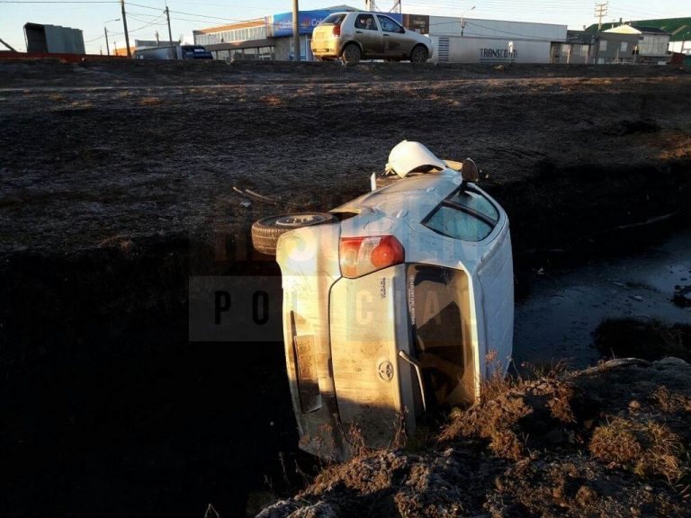 El siniestro se produjo esta madrugada frente a la comisaría Tercera de Chacra II por donde circulaba un rodado Ford Fiesta al mando de un joven que inexplicablemente perdió el control y chocó a un auto estacionado, volcando luego.